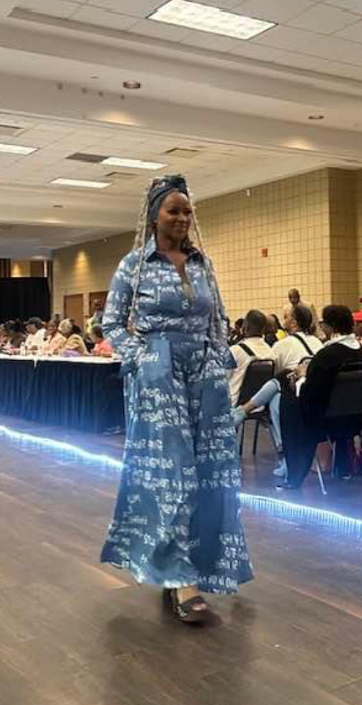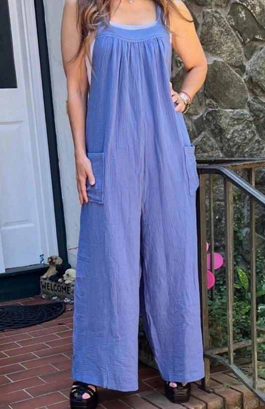 Blue Crinkle Material Wide Leg Jumpsuit Tie In Back Size L