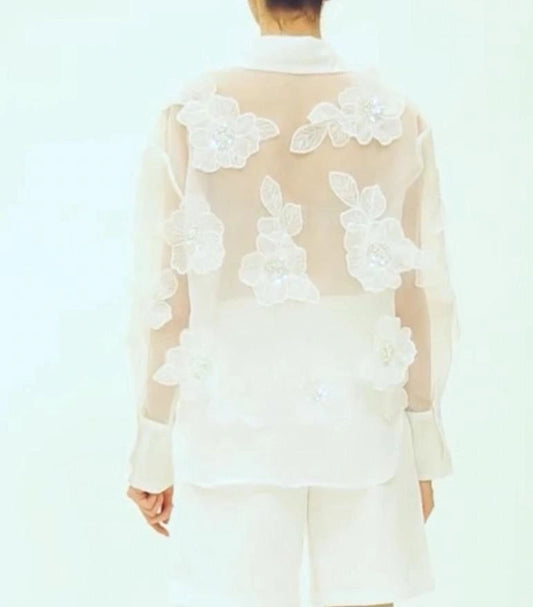 Blouse White Sheer With 3D Sequin Floral Design One size fits up to L