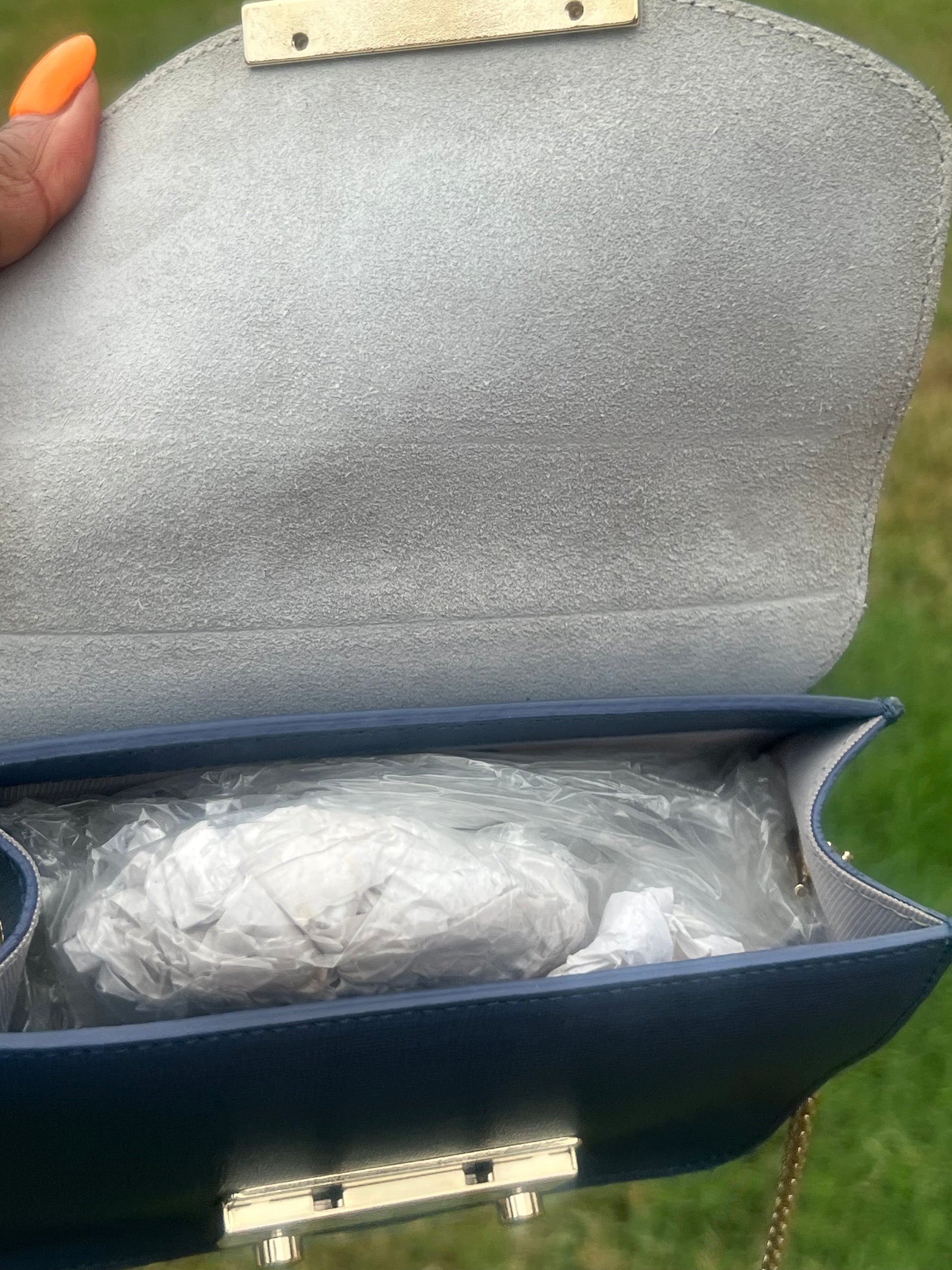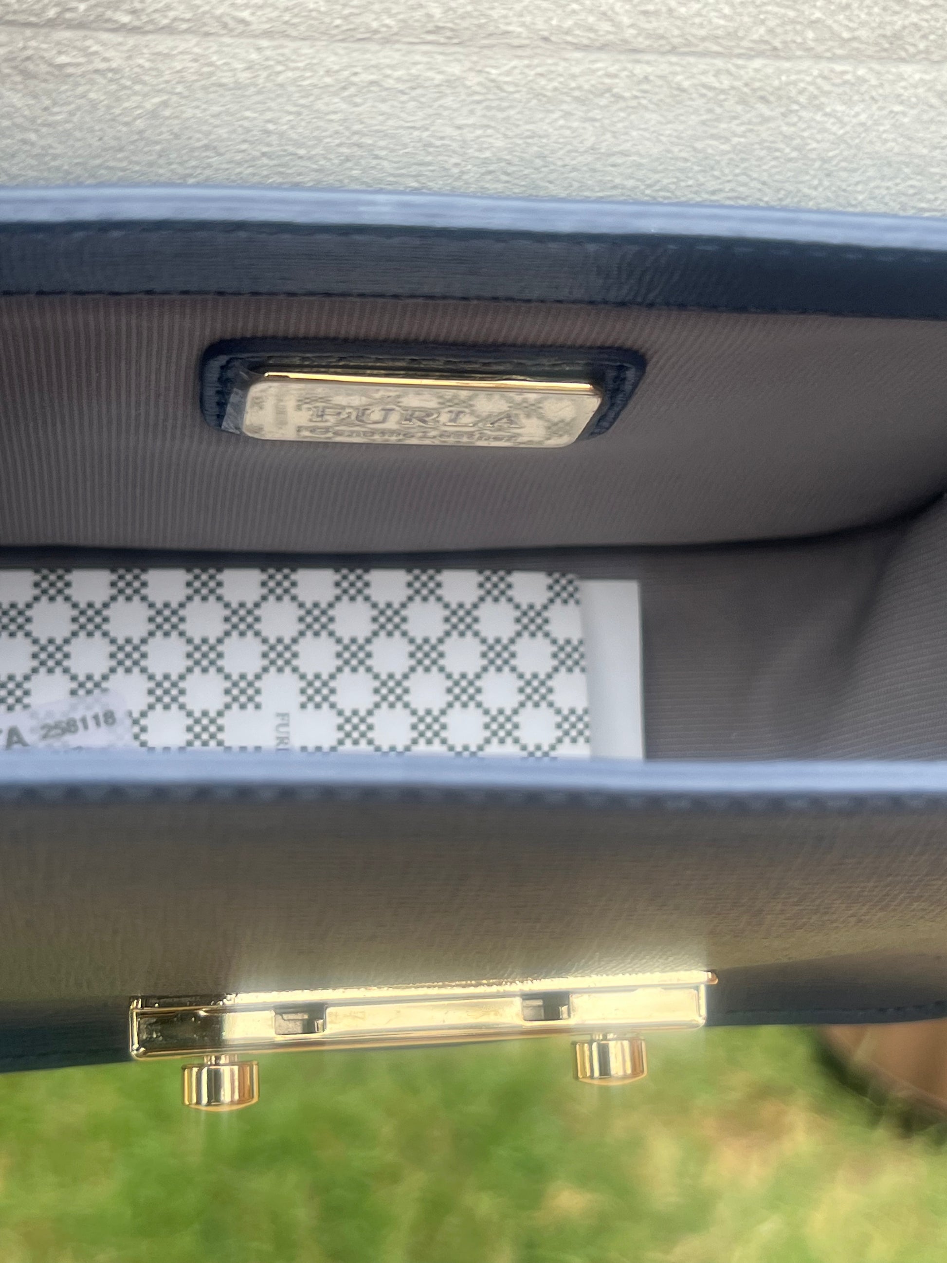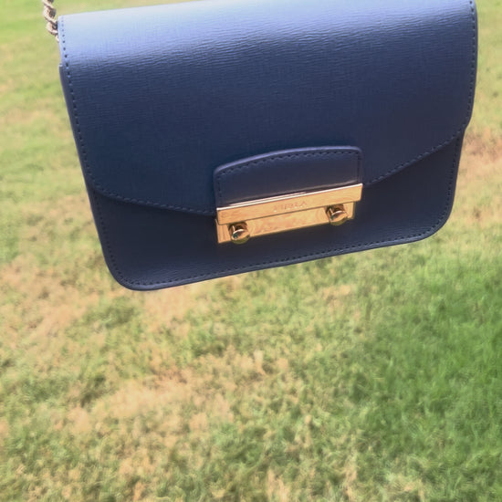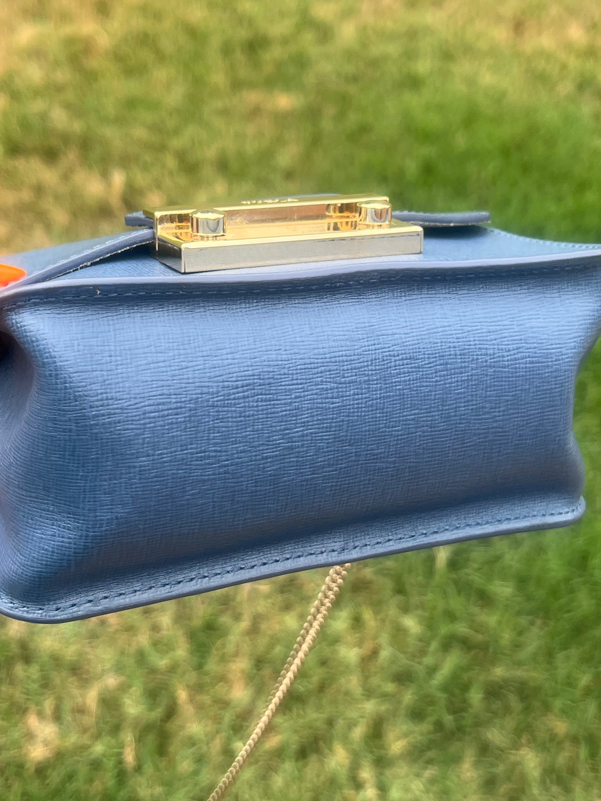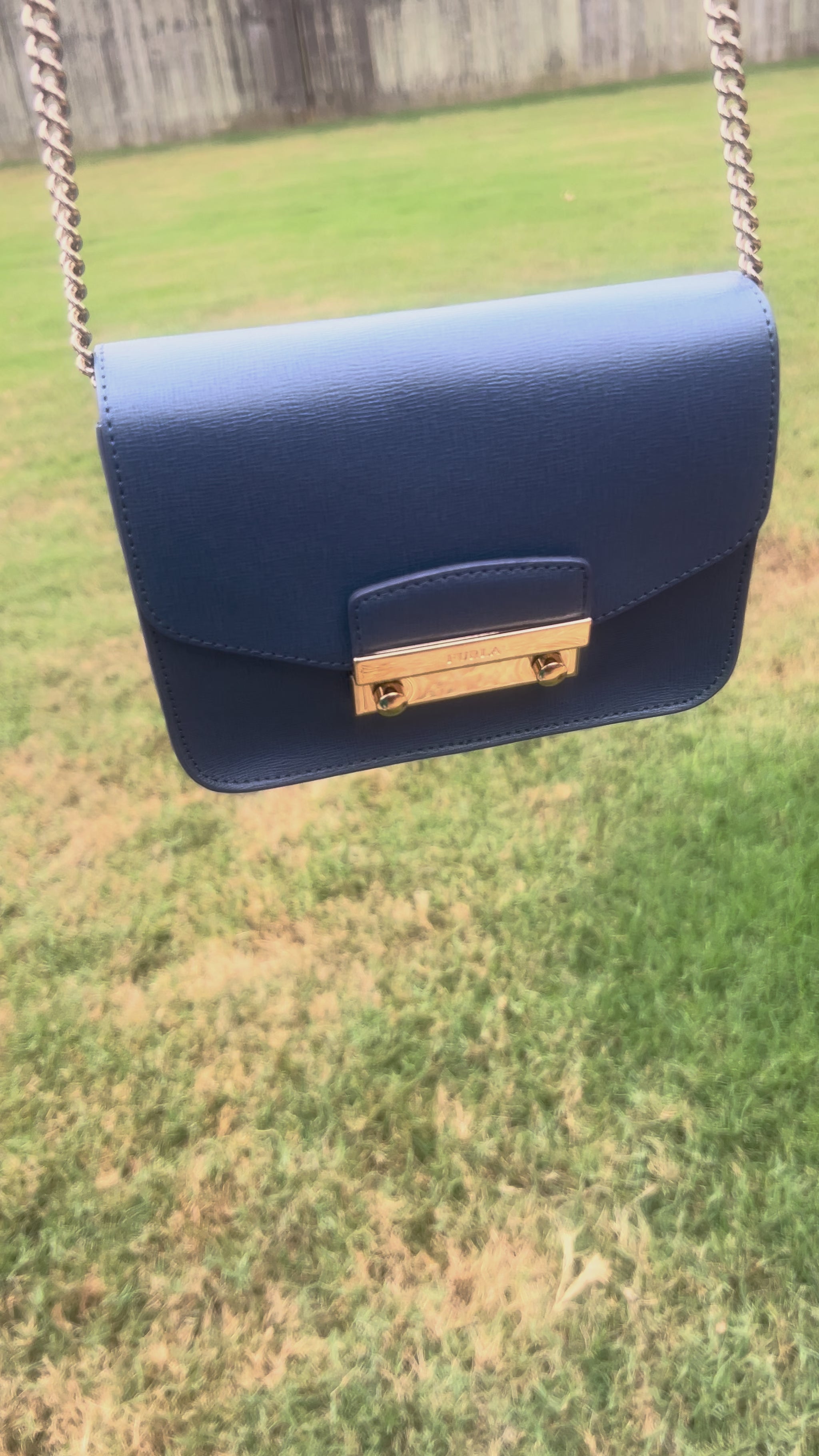 Elevate your style with the Furla Blue Crossbody Bag. This chic accessory features a sleek design and a vibrant blue color, perfect for any occasion. Saffiano leather